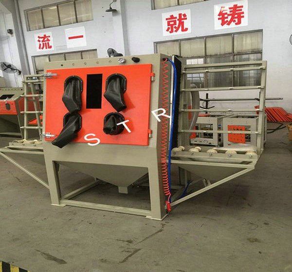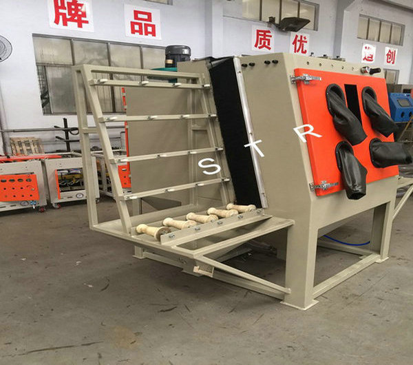 Flat glass, marble, metal plate vertical through the type dry sandblasting machine,