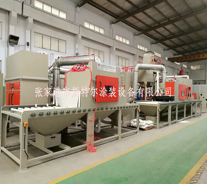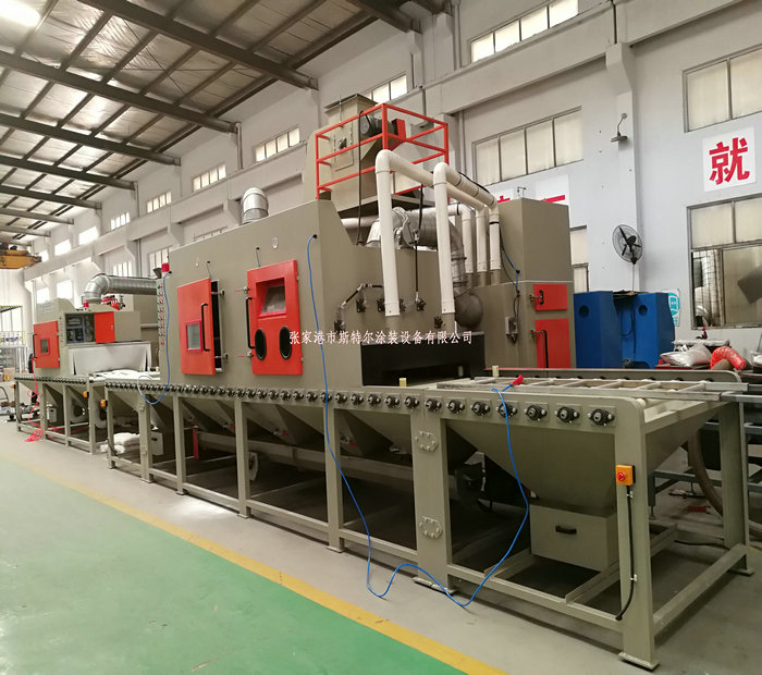 工人只操作噴砂機的控制系統和裝卸工件(或由上下工序的噴砂機的輸送機構輸入或者輸出),需要噴砂的工件放置在噴砂機的輸送機構上會自動運行經過吹氣倉后在通過噴砂工作倉進行表面噴砂處理,表面達到一定的粗糙度及達到除油,除污垢的最終效果,噴砂機加工結束后在經過除塵倉及吹氣倉,最終經過噴砂機的輸送機構運送出來。即噴砂加工結束。經過人工識別檢測后搬離,如工件上面有殘留的砂粒及粉塵時由人工使用吹氣槍清理結束后搬離。一般在噴砂機的一端出口會設計吹氣風刀,達到粉塵及砂料95%以上清除干凈。但是有可能殘留在死角及內孔里的砂料,在這種情況下只有靠人工清理,才可以全部清理結束。 代加工方式相應: