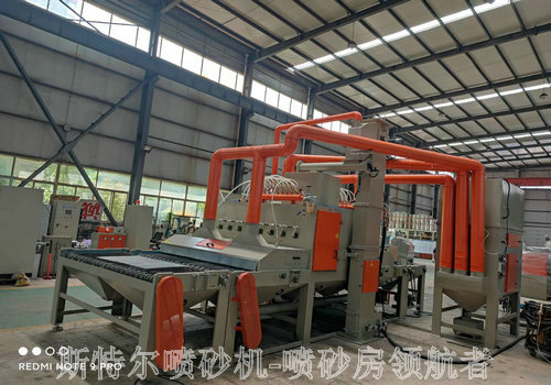 為保時來設計生產制造的自動輸送式噴砂機交付使用。該款自動噴砂機設計新穎,自動化程度比較高:采用雙向輸送式機構設計,噴砂槍采用24組噴砂機專用噴砂槍配套,能夠實現無死角噴砂處理,該款噴砂設備在設計時配專用濾筒式除塵,滿足環保要求及過濾風量,在噴砂機工作期間基本可以滿足使用中無粉塵泄露,在使用中保證除塵器風機無粉塵排放,滿足噴砂機的環保要求,達到客戶使用設備的初衷,在使用噴砂機時應定期檢查噴砂機的濾芯是否堵塞或者松動,噴砂機除塵器的脈沖是否正常啟動,是否按照節拍運行,因為這個直接決定噴砂機的除塵效果好與壞,也保證噴砂機在使用中對環境的影響,這個自動噴砂機應用的產品范圍比較廣泛如:平板類任何產品任何材質的產品都可以進入進行噴砂加工和處理,鋼板,鋁板,玻璃,不銹鋼板等產品,一些異性的結構件只要工作倉可以進入就都可以進行噴砂機操作使用,無非就是砂料的選擇和對產品表面的要求工藝決定,并且可以根據要求定制噴砂機的長度和寬度高度,重型工件在選擇噴砂機時應及時與我們工程師溝通是否加固等要求。